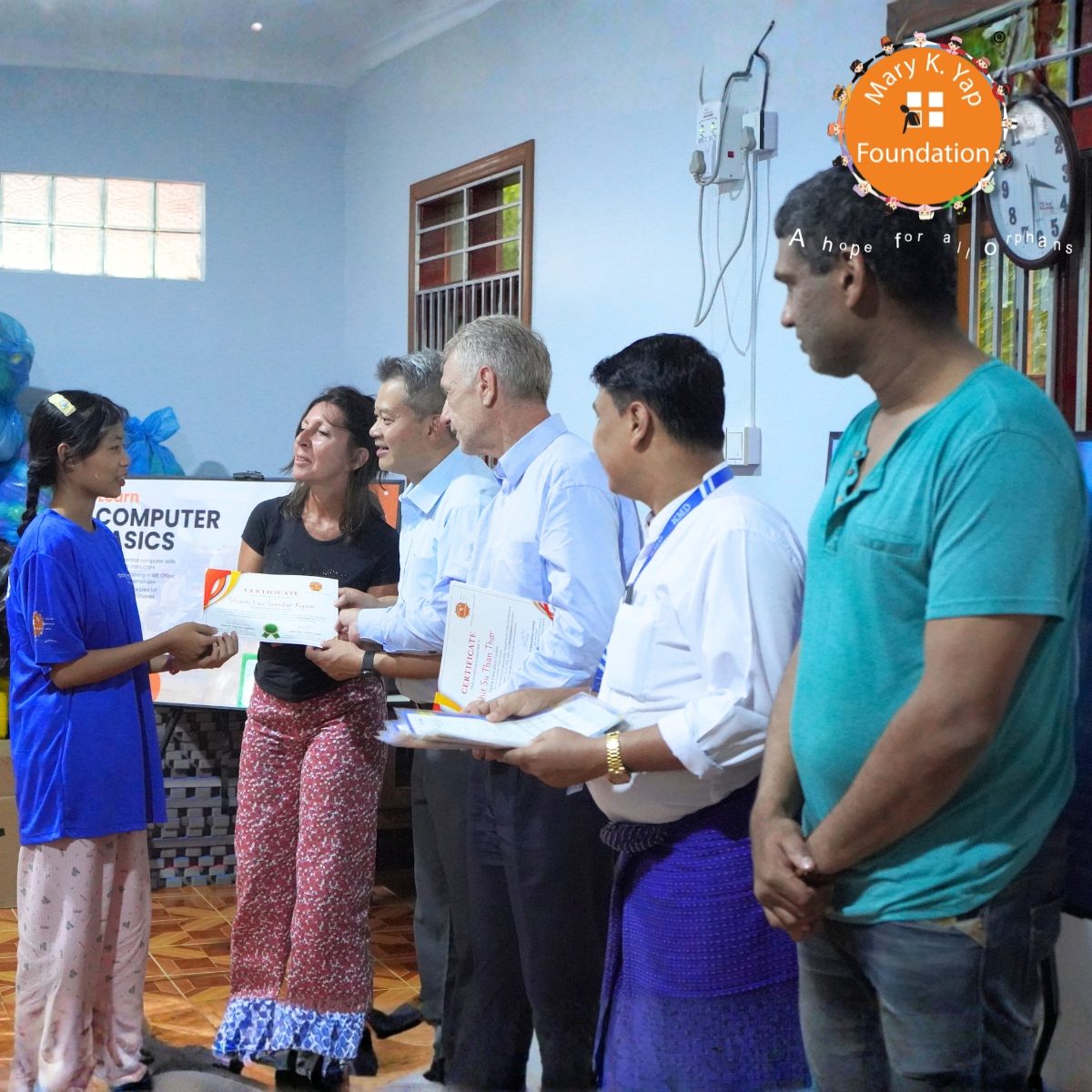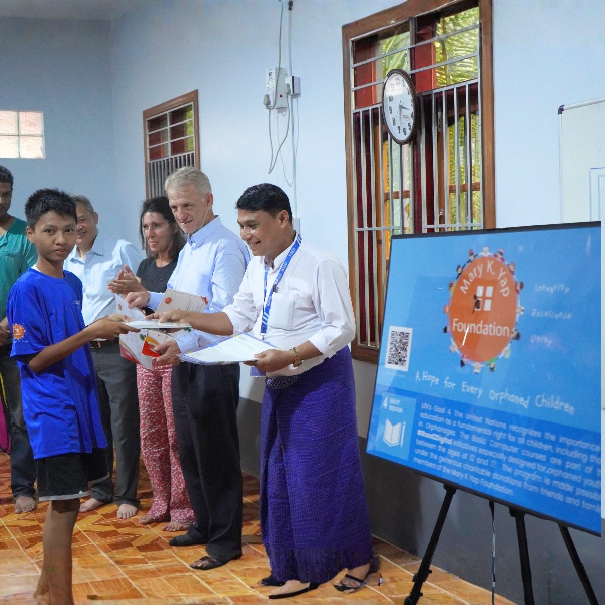 The Foundation extends its sincere appreciation to Dr. Philip Charlesworth of the USAID-funded Agriculture and Food Systems Development Activity (ACDI/VOCA), our B2B partner Mandalay Productions Myanmar, and Ms. Meme Lwin for their generous donations of laptops and air conditioners, which made the computer sessions both possible and comfortable for the children. We also extend special thanks to Mr. Jay Edwin, one of our dedicated Country Orphanage Ambassadors, for his support in issuing the Certificates of Achievement to students who successfully completed the three-day training course. These collective contributions play a vital role in advancing the Foundation’s mission to empower orphanages with practical learning resources and greater digital access.