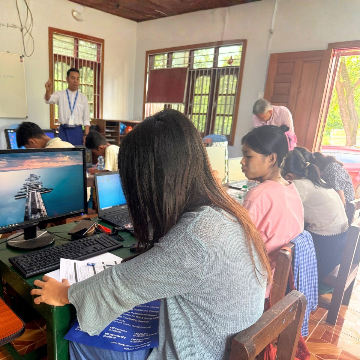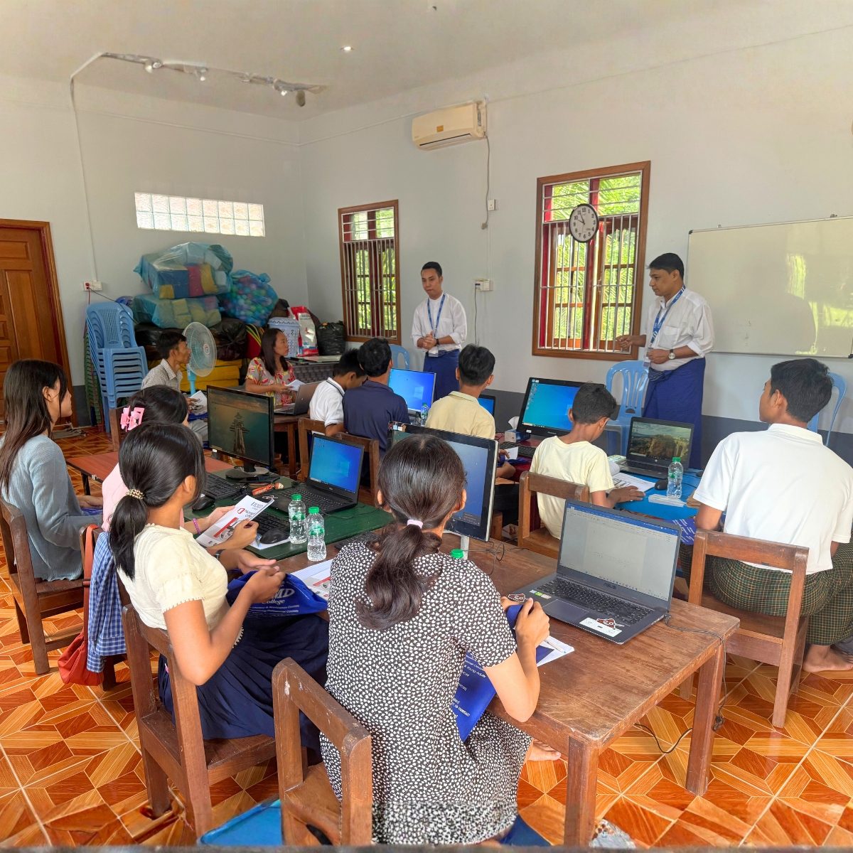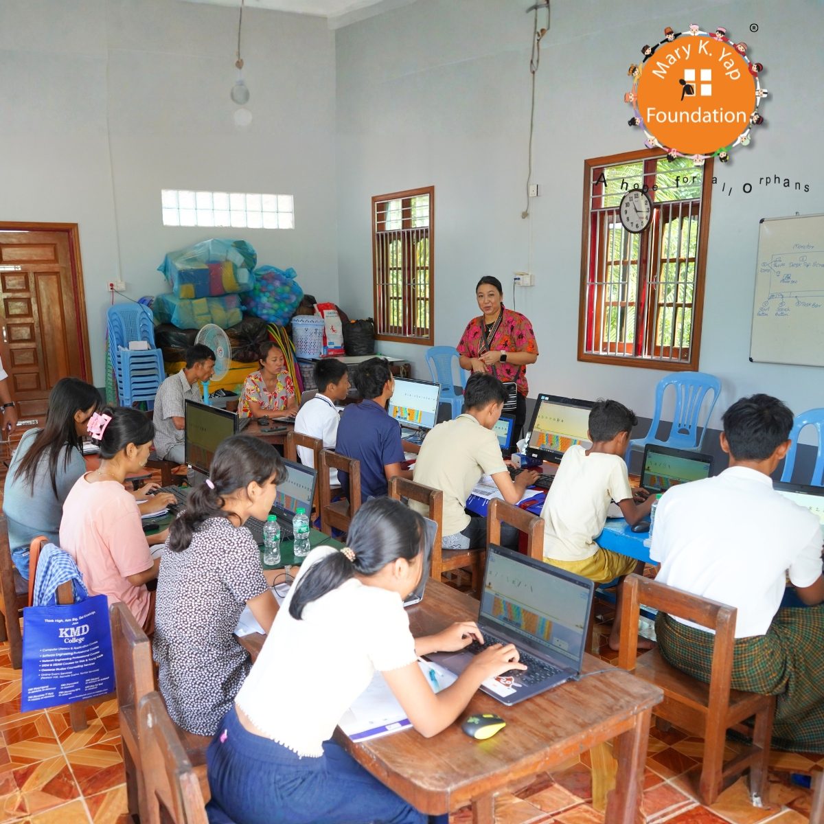 Through the #Road2Digital initiative, the Foundation—together with KMD Computer Learning Center, a leader in computer education with over 30 years of experience—conducted a three-day basic computer course for 10 students aged 12–17, with participation from a headmaster and Pastor Daniel Van Lal Suan from Joyful Orphanage. Meme Lwin, the Foundation’s Volunteering Program Manager, stayed on-site throughout the program to ensure that lessons delivered by KMD’s professional instructors were accessible and easily followed by all participants.