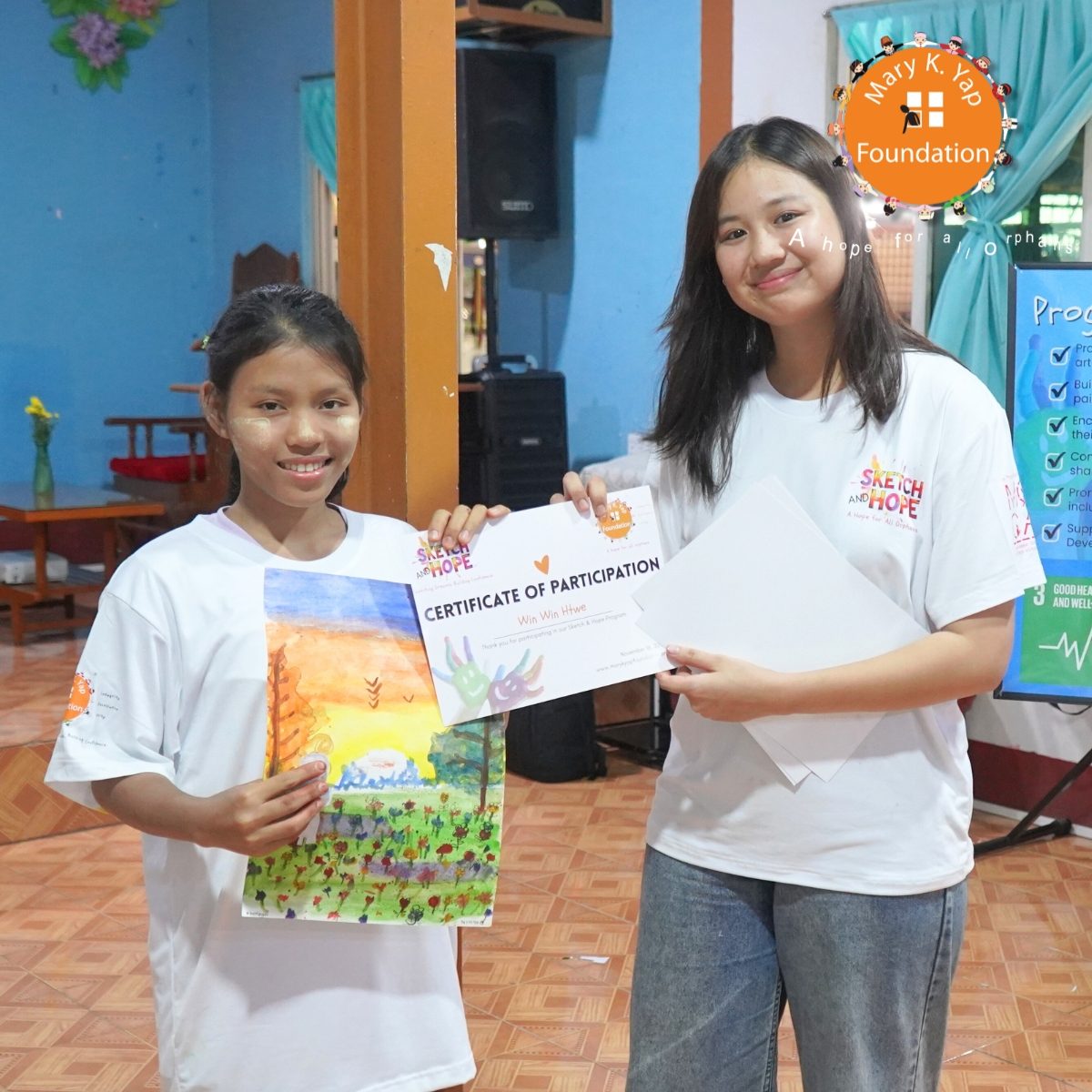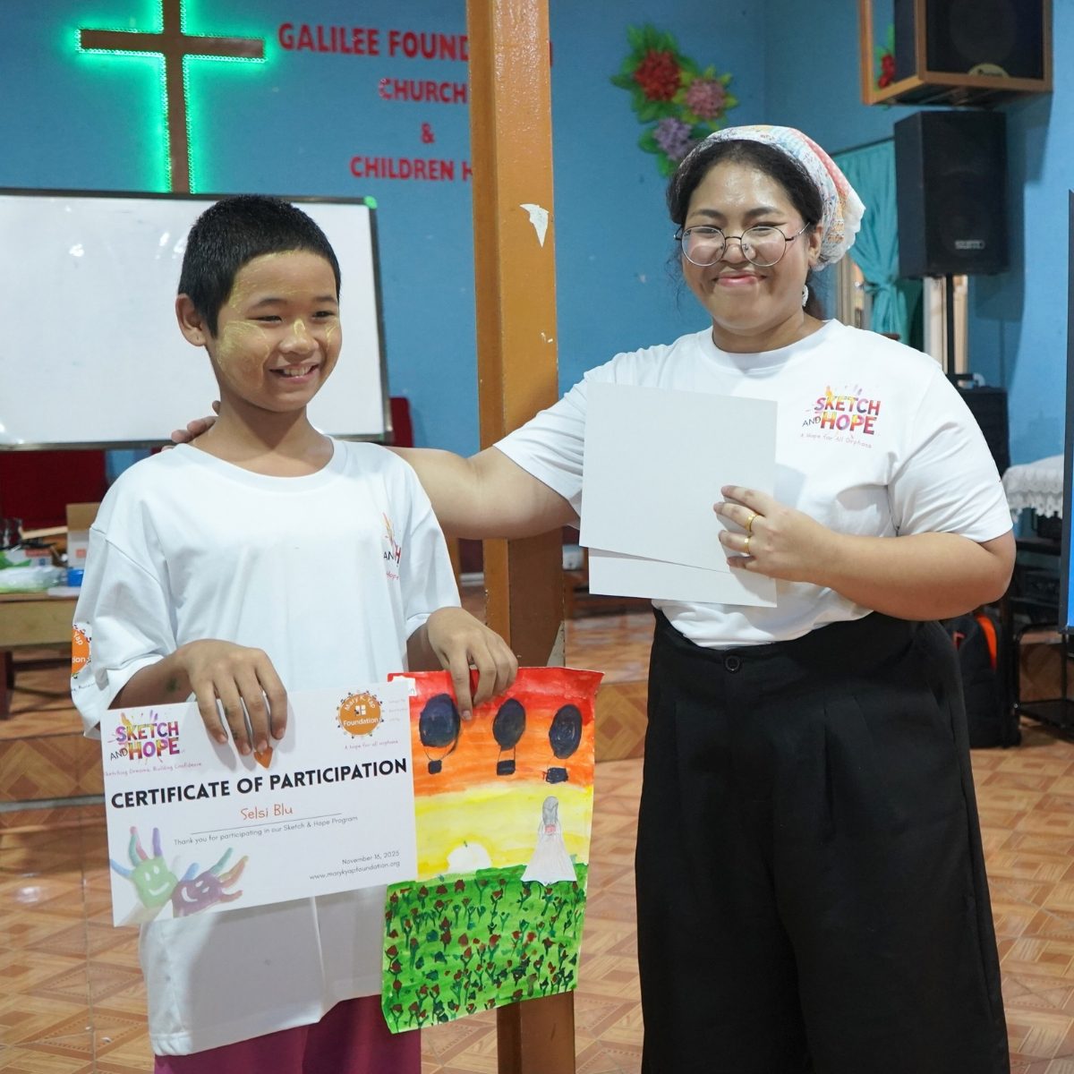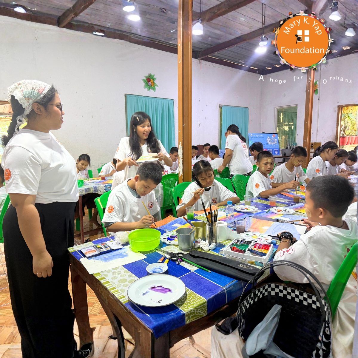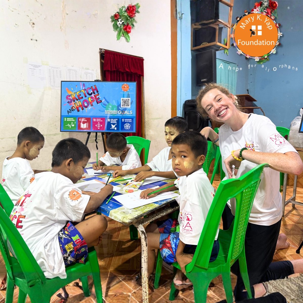On November 16, 2025, the Mary K. Yap Foundation proudly launched its first Sketch and Hope art program at the Galilee Foundation Church and Children’s Home for Orphan Youths in Shwe Pyi Thar, Myanmar—an inspiring milestone in our mission to empower orphaned children through education, creativity, and emotional development.