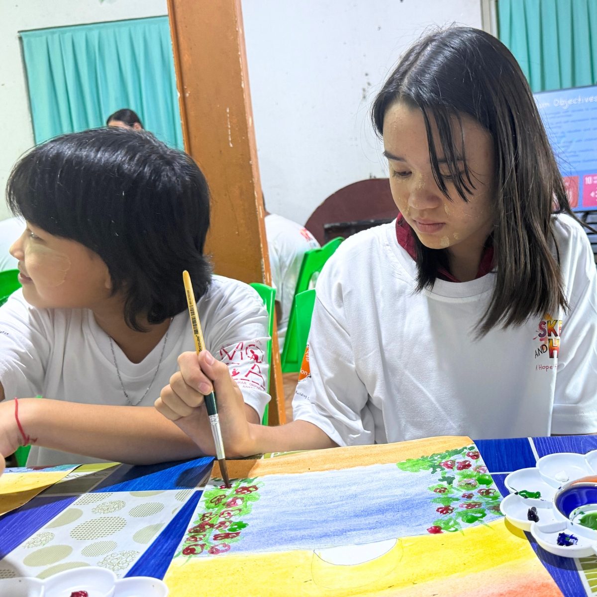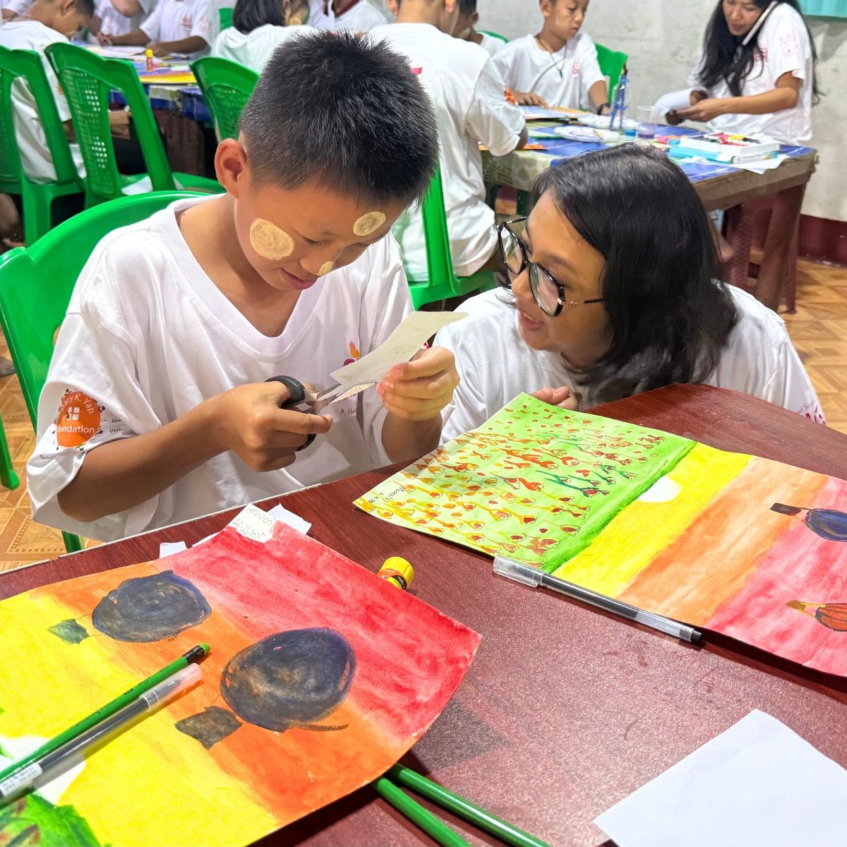 This inaugural program welcomed 38 children, who spent the day exploring drawing, painting, and imaginative expression under the guidance of three distinguished instructors: Artist Than Thar, Artist Han Thar, and Artist May San.