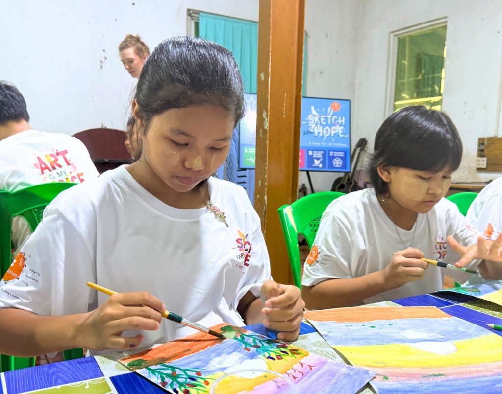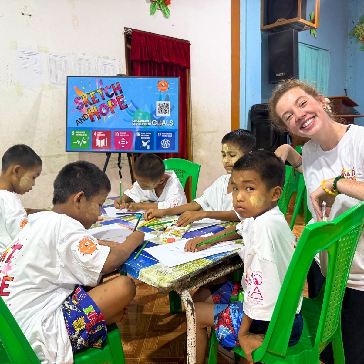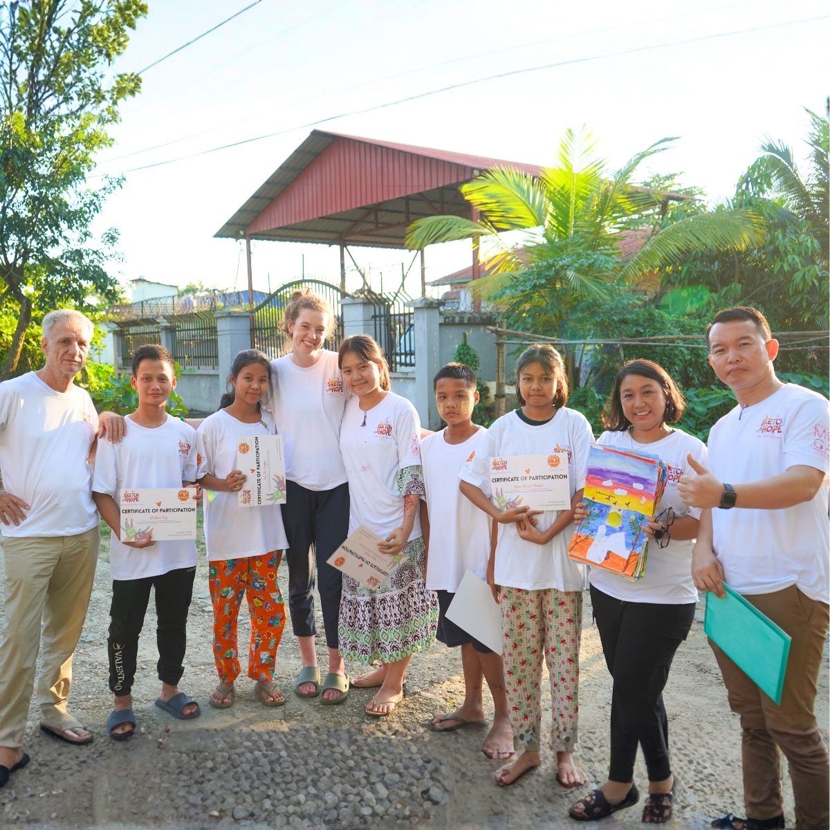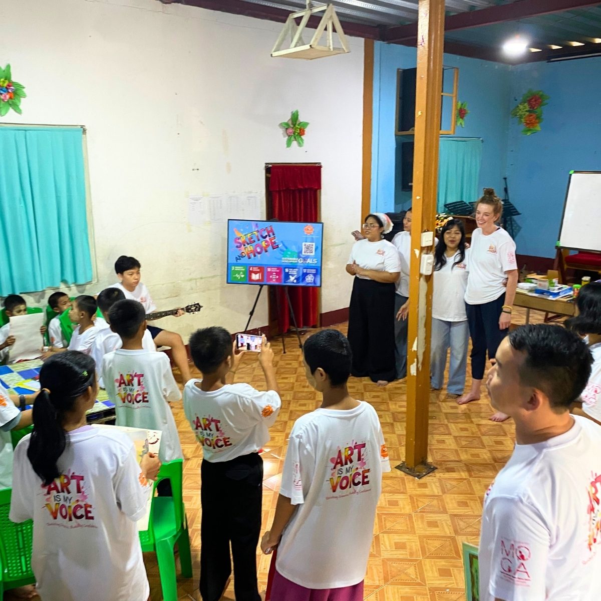 We launched the Sketch and Hope program at Ga lilee Church & Children’s Home on November 16, 2025. At this home, Pastor Saw and a few family members care for 38 children. The students started the day by sketching their hopes for the future and what they love. There were some doctors, singers, and pharmacists… lots of nature scenes and crosses also.