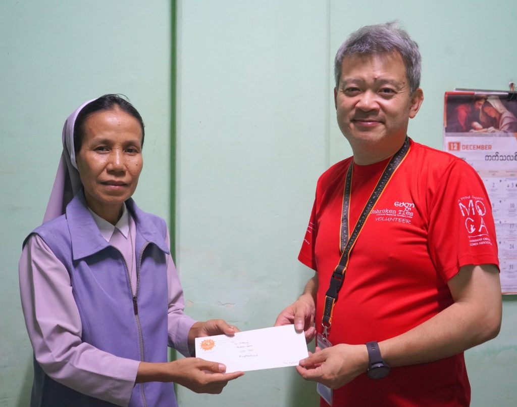During our visit, funds were distributed directly to three partner institutions in Taungoo, with the support and coordination of local leaders. We met with Khun Thoe Yu, Director of Chit Metta (Chit Myittar) Orphanage, who outlined the ongoing needs of displaced children; Father William, representing the Cathedral of the Sacred Heart, which oversees St. Aloysius Children’s Boarding Home; and Sister Santina of St. Anthony Children’s Home, who continues to provide care and stability to children affected by the disaster. Each institution received support aligned with their most pressing post-typhoon recovery needs.