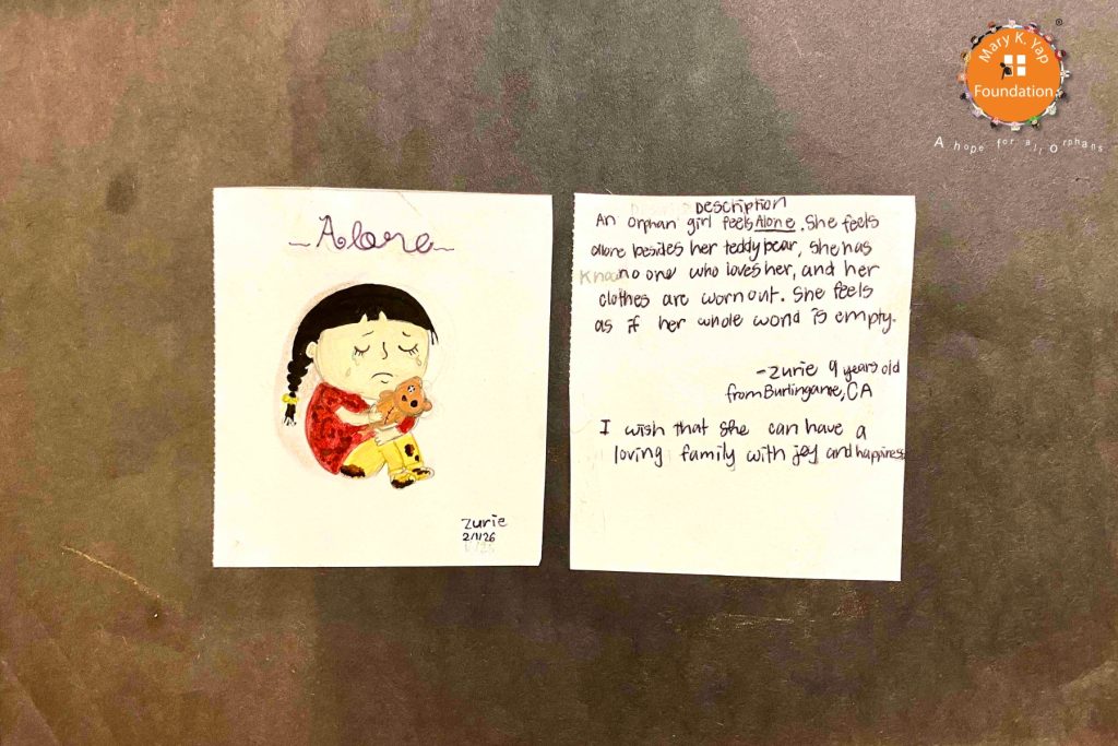 San Francisco, USA – March 2, 2026 — The image in this post features “Alone,” a moving depiction of an orphaned girl created by an eight-year-old artist from Burlingame, CA, inspired by her desire to raise awareness and support for orphaned children through the Foundation’s “Art Is My Voice” program under the Sketch and Hope campaign. As we look ahead to International Art Day on April 15, we honor the orphaned children who have participated in this initiative—empowering young artists to express, through creativity, the realities of life that deserve compassion, understanding, and meaningful attention.